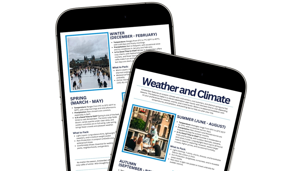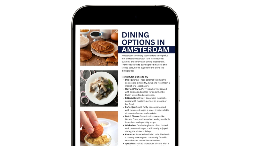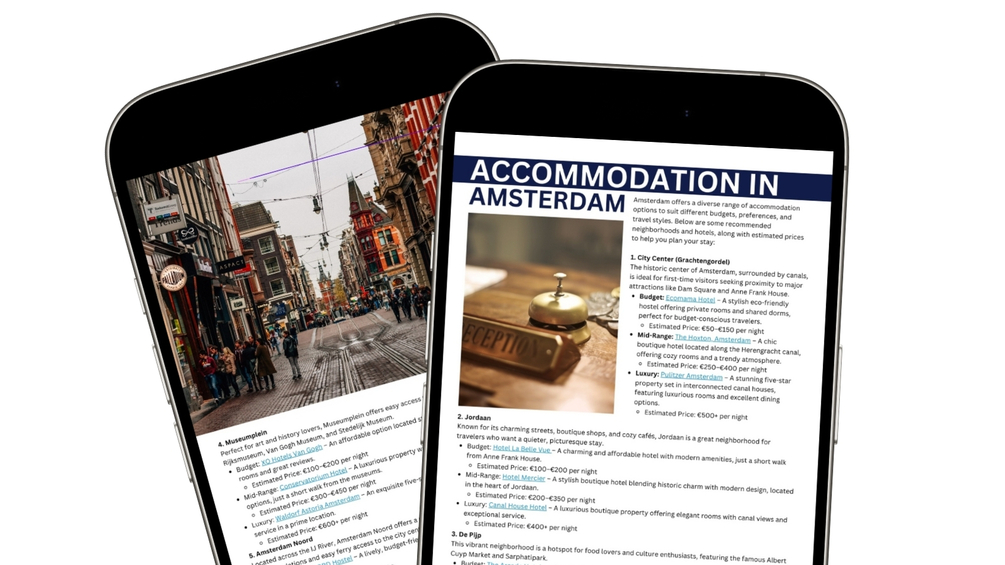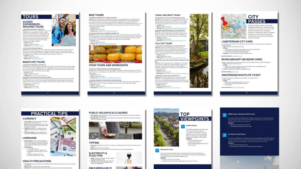 Welcome to your ultimate guide to exploring Amsterdam!Inside, youâll find a carefully curated itinerary showcasing iconic landmarks, hidden gems, and authentic local experiences designed for an unforgettable adventure. This guide includes everything from essential visitor information and budgeting tips to seasonal travel advice and transportation options. Discover handpicked accommodations, must-visit dining spots, and cultural highlights that bring the vibrant spirit of Amsterdam to life. Youâll also find recommendations for useful apps, city passes, and practical tips to help you navigate the city with ease. Get ready to explore the charm of Amsterdamâs canals, rich history, and unique culture while creating memories that will last a lifetime!